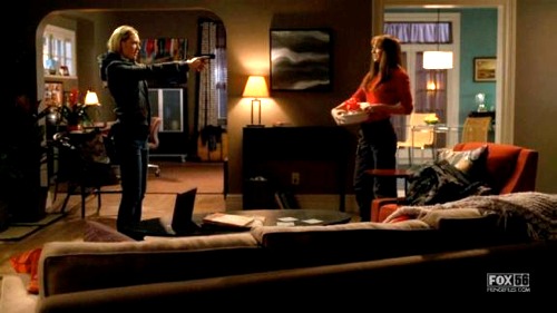 Com isso tivemos uma maior tempo para vislumbrar a realidade paralela e ainda um contacto com personagens desse mundo, mais especificamente com a Fring(verse) Division, que tem um agente Broyles mais activo (até enverga t-shirt), o agente Charlie continua vivo por lá e muito activo (e com algumas taras por aranhas), a agente Olivia não é uma loira mas morena durona pois deu a entender que é bem lixada para a acção e não só (e até tem mais acção na cama dela também). A maior surpresa foi ver a agente Astrid envolvida activamente na divisão de investigação, sendo por lá uma agente de apoio informático (fixe).